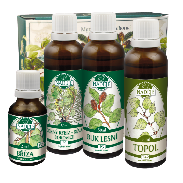 Postup užívania kúry: Súčasne kvapkať T42+P2, po doužívaní P2 pridajte P9, po doužívaní P9 využívajte P6 a všetko doužívať. K jednotlivým púčikom si ešte môžete doplniť ešte Topoľ P46.