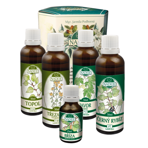 Postup užívania kúry: Súčasne kvapkať T40+T42+P2, po doužívaní P2 pridajte P17, po doužívaní T42 pridajte P7 a všetko doužívať. K jednotlivým púčikom si ešte môžete doplniť topoľ P46 alebo ľubovník P47 .