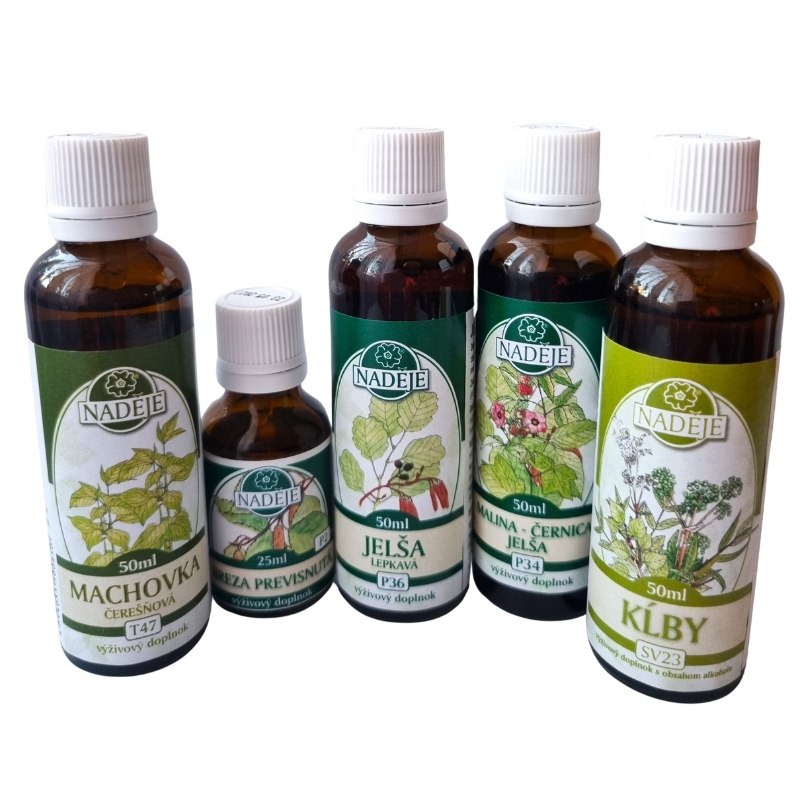 Zloženie kúry: Machovka čerešňová T47, Breza P2, Jelša P36, Ostružina malinová-jelša P34 a SV23 Kĺby.