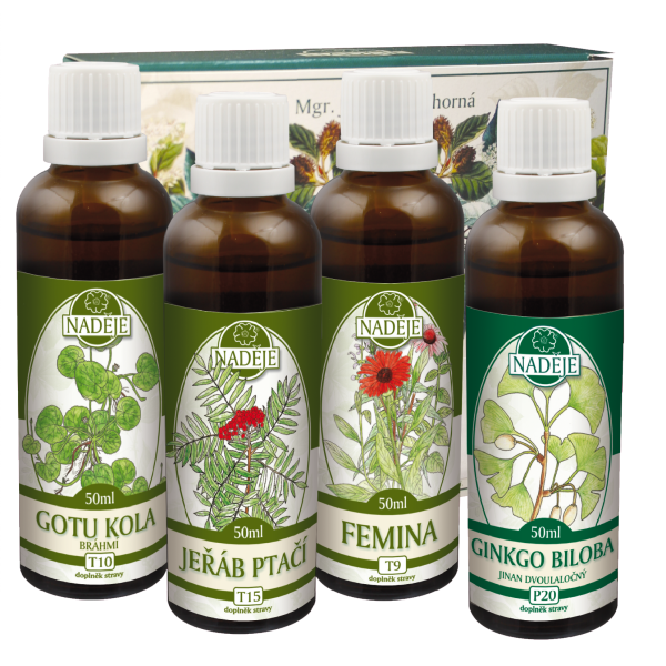 Zloženie kúry: Gotu-kola T10, jarabina vtáčia T15, femina T9, ginko biloba P20