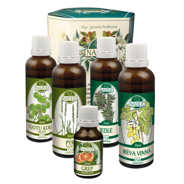 Zloženie kúry: gotu-gola T10, pýr T34, grep T11, vínna réva P40, jedľa P18