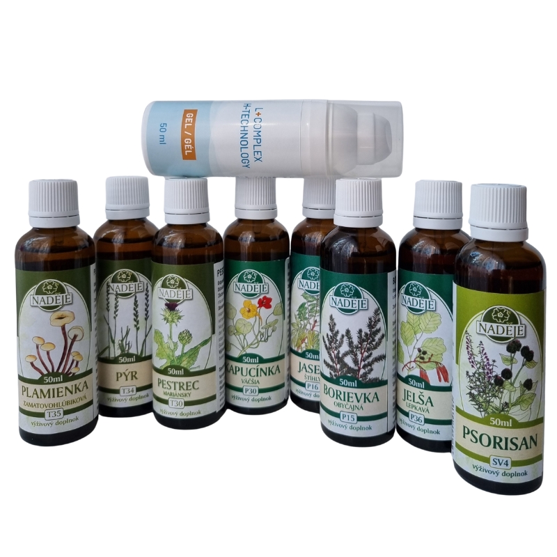 Na zlepšenie fukčnosti pohybového ústrojenstva pri príznakoch postihujúcich pokožku doplníme liečbu prípravkom L-Complex gel. L-COMPLEX gel je prírodný prípravok rastlinného charakteru so širokým zdravotným použitím, má okrem iného aj omladzujúce účinky na pokožku.