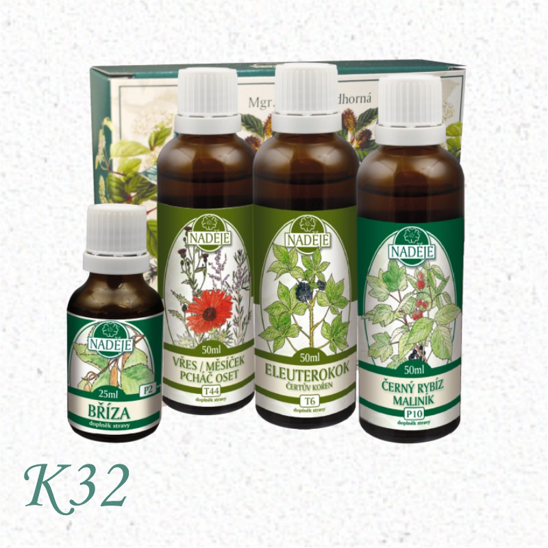 Pokračovacia zostava tinktúr ku kúre K32 sa užíva pri ďalšom čistení tela prirodzenou cestou a bráneniu sa vzniku nádorov alebo ich rozvoju.