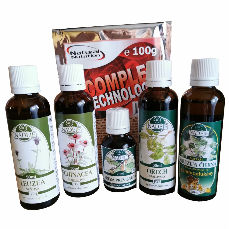 Zloženie kúry: Leuzea T24, Echinacea T7, Breza P2, Orech vlašský P37 a Čierna ríbezľa s betaglukanom PG7, L-Complex H-technology - 100g.