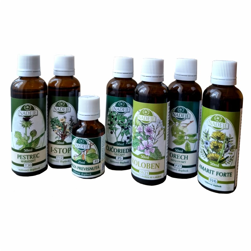 Zloženie kúry: Pestrec T30, I-Stop T12, Breza P2, Čučoriedka P5, Koloben SV21,Orech vlašský P37 a Amarit forte SV6.
