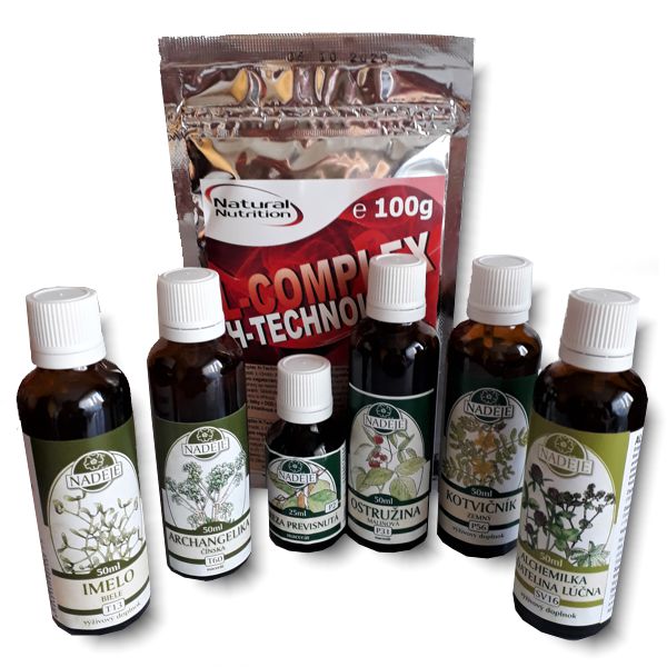 Zloženie kúry: imelo T13, archangelika T60, breza P2, ostružina malinová P31, kotvičník P56 a Alchmemilka-ďatelina SV16. L-Complex H-technology- 100g.
