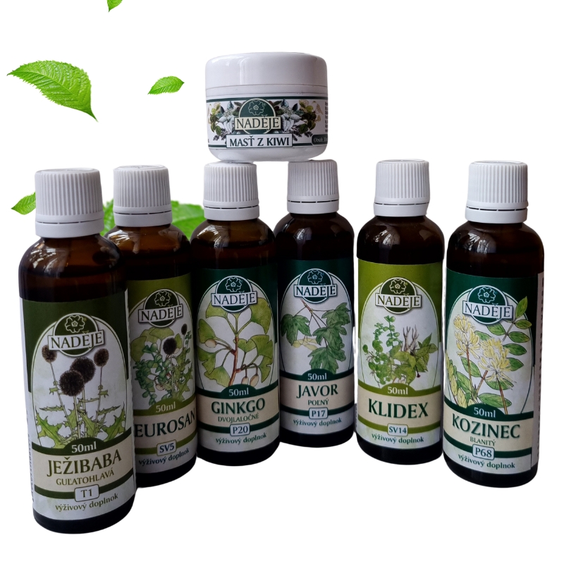 Zloženie kúry: Ježibaba T1, Neurosan SV5,Ginkgo P20,Javor P17, Klidex SV14a Kozinec P68.