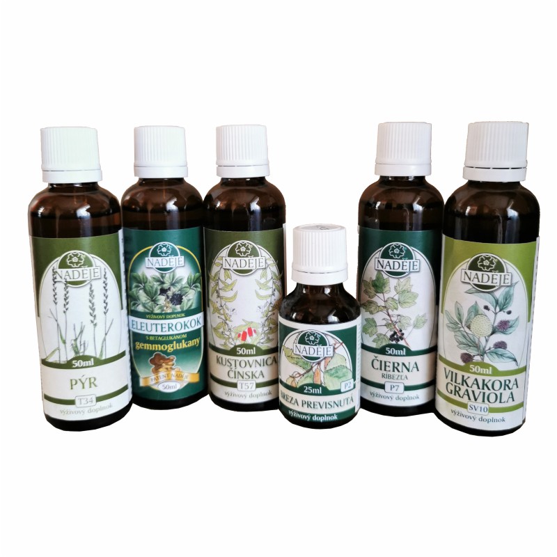 Zloženie kúry: Pýr T34, Eleuterokok s BG TG6, Kustovnica T57, Breza P2, Čierna ríbezľa P7 a Vilkakora-graviola SV10.