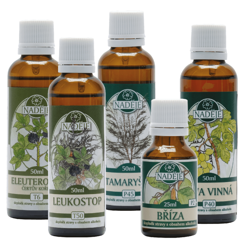 Postup užívania kúry: Súčasne užívať tinktúry eleuterokok, Leukostop a breza, po využití tinktúry brezy vezmete tamariška a pokračujete v užívaní eleuterokoku a Leukostopu, ak vám dôjdu, tak bez nich. Po využití tamariška vezmete nakoniec vínnu révu a všetko doužívať.
