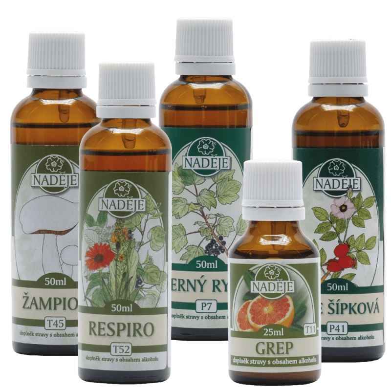 Postup užívania kúry: Súčasne užívať tinktúry šampiňón, Respiro a grep, po využití tinktúry grepu vezmete čierne ríbezle a pokračujete v užívaní šampiňónu a Respira, ak vám dôjdu, tak bez nich. Po využití čiernych ríbezlí vezmete nakoniec ružu šípkovú a všetko doužívať.