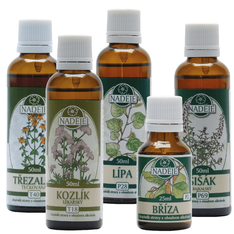 Zloženie kúry: T40 Ľubovník - Fyzické a duševné povzbudenie, dýchací systém, dobrý spánok, nervová sústava. T18 Valeriána lekárska - Upokojenie, stres, relaxácia, srdce, cievy. P2 Breza previsnutá - Cholesterol, pečeň, obličky, trávenie, prečisťovanie. P28 Lipa malolistá - Dýchací systém, obranné reakcie, psychika, pečeň. P69 Šišák bajkalský - Adaptogén, obranný systém, stres, spánok.