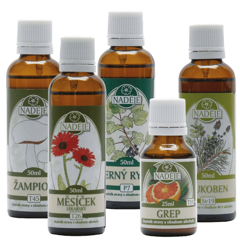Postup užívania kúry: Súčasne užívať tinktúry šampiňón, nechtík a grep, po využití tinktúry grep vezmete čierne ríbezle a pokračujete v užívaní šampiňónu a nechtíka, ak vám dôjdu, tak bez nich. Po využití čiernych ríbezlí vezmete nakoniec Mukoben a všetko doužívať.
