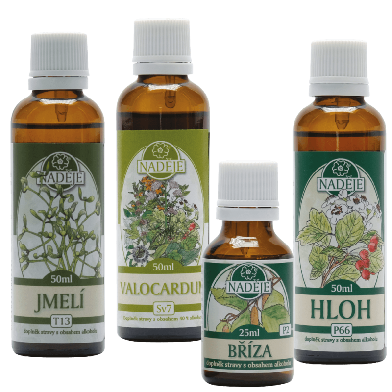 Postup užívania kúry: Súčasne užívať tinktúry imelo a breza, po využití tinktúry brezy vezmete Valocardum a pokračujete v užívaní s imelom, pokiaľ vám dôjde tak bez neho. Po využití Valocarda vezmete nakoniec hloh a všetko doužívať.