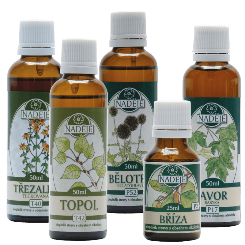 Postup užívania kúry: Súčasne užívať tinktúry ľubovník, topoľ a breza, po využití tinktúry brezy vezmete ježibabu a pokračujete v užívaní ľubovníka a topolu, pokiaľ vám dôjdu tak bez nich. Po využití ježibaby vezmete nakoniec javor a všetko doužívať.
