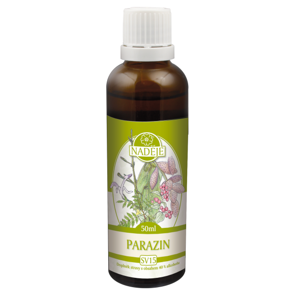 Použitie: Parazin je jedinečný prípravok proti parazitom v organizme. Andrographis pomáha udržiavať tráviaci trakt bez výskytu parazitov. Smilax podporuje činnosť vylučovacieho systému, pomáha pri prečisťovaní organizmu. Terminalia prispieva k udržiavaniu prečisťujúcich funkcií, pomáha pri purifikácii tela. Povzbudzuje imunitu, odolnosť organizmu a jeho prirodzené obranné systémy. Receptúru doplňujú tradičné a osvedčené rastlinné zložky Orech čierny a jelša.Zloženie: voda, alkohol 40% obj., právenka latnatá (Andrographis paniculatis) list, Smilax officinalis koreň, Orech čierny oplodie, jelša lepkavá kúra, mandľovník (Terminalia chebula) plod.