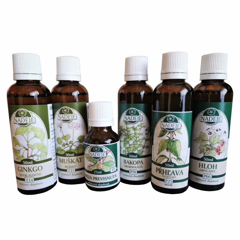 Zloženie kúry: Ginkgo T14, Muškát T31, Breza P2, Bacopa P70, Prhľava P25 a Hloh P66.